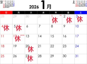 基本的には 第一・第三週 日曜月曜日 連休