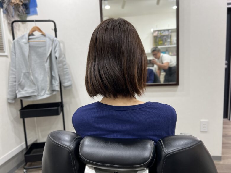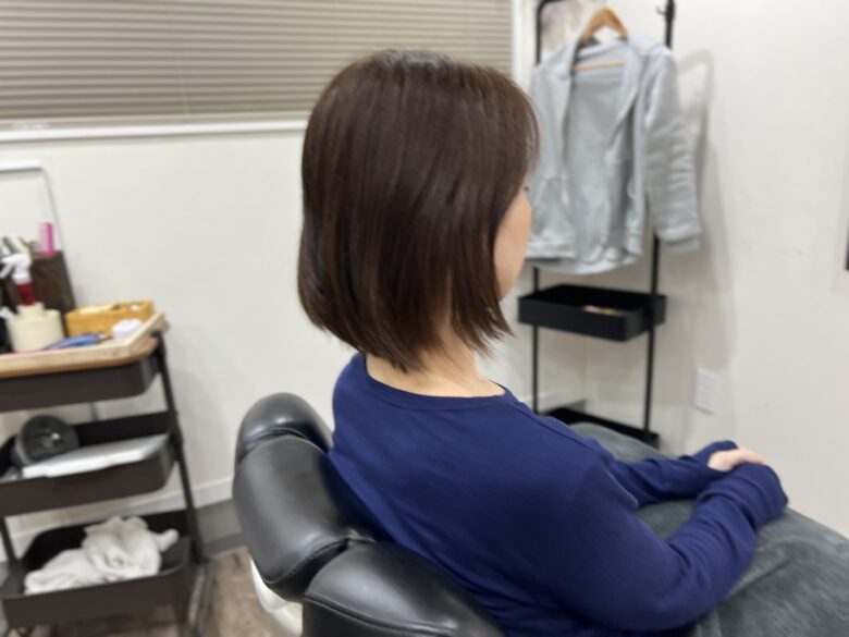 伸びてボブになって丸みも出なくなっていたので、収まり良く丸みも出るスタイルに変更