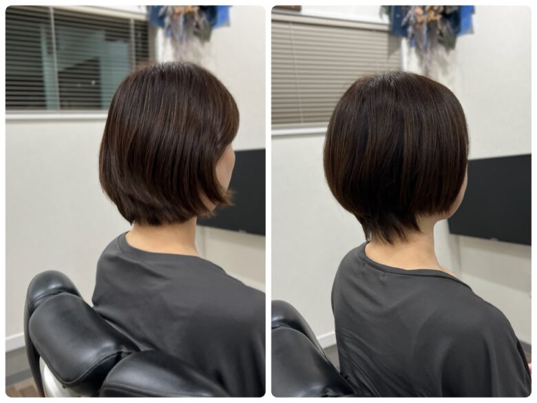 サイドも似たようなぶつ切りでしたが、長さはほぼ変えずに、少〜し段を入れて丸みをつけることで馴染み良くしていきました