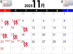 第二・第四・第五 火曜日をお休みしていますが、予定やカレンダーの都合によっては休みの週を入れ替える事もあります