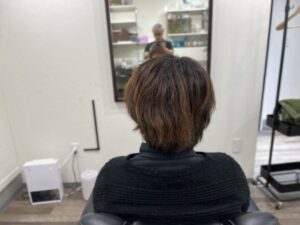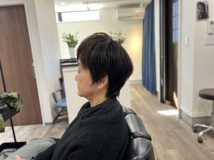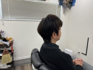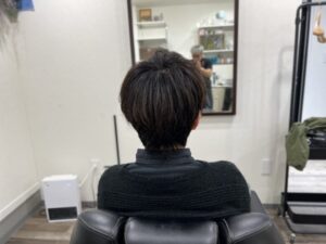 先日、息子さんが新アイテムの風の出るアイロンみたいなドライヤーみたいなものをプレゼントしてもらたそうで、それを使いたいから少し長めにカットをリクエスト