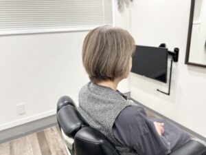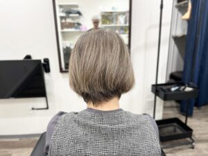 後ろを少し持ち上げたボブにカットしてましたが、長くなるとうねりが出てくるからと段を入れて上を短くする事に