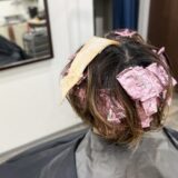 定番はインナーカラーをピンク系に染めることなんだけど、今回は表面にも一筋ピンク系を入れたいってリクエスト