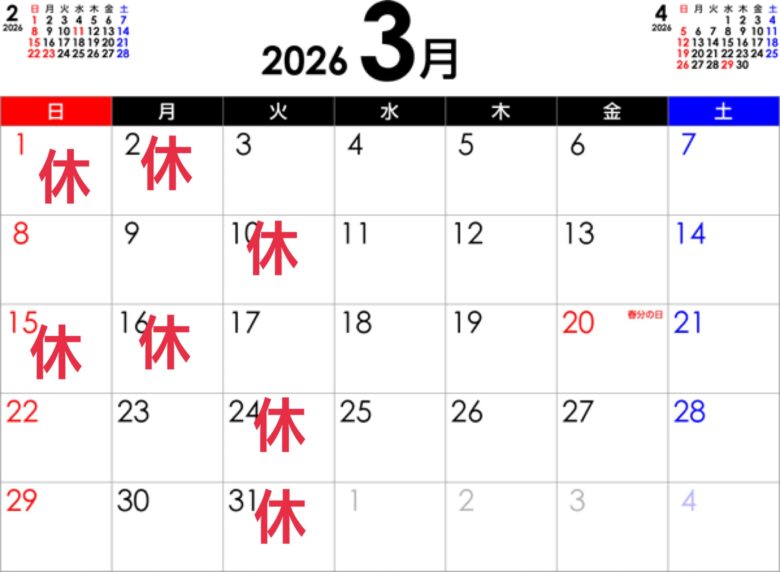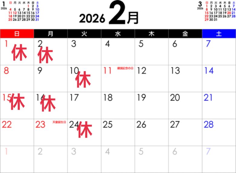 基本的には 第一・第三週 日曜月曜日 連休