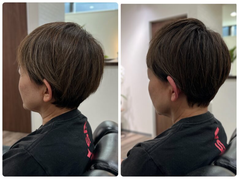 形もショートなので、ちょっと伸びた分を切るだけでも変わっちゃいます\(^o^)/
